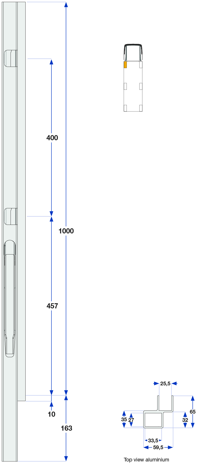 Forstolpe 1000mm venstre 2-port