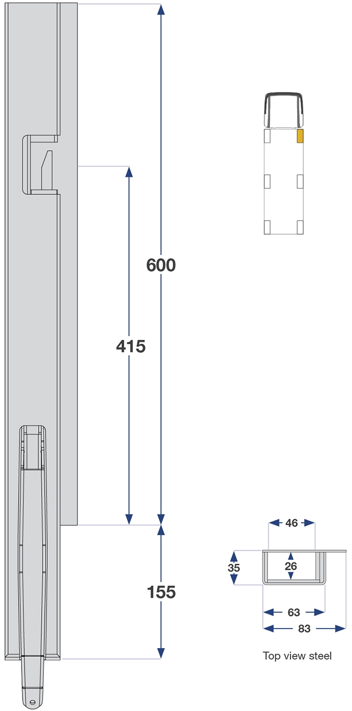 Forstolpe 600mm venstre 1-port
