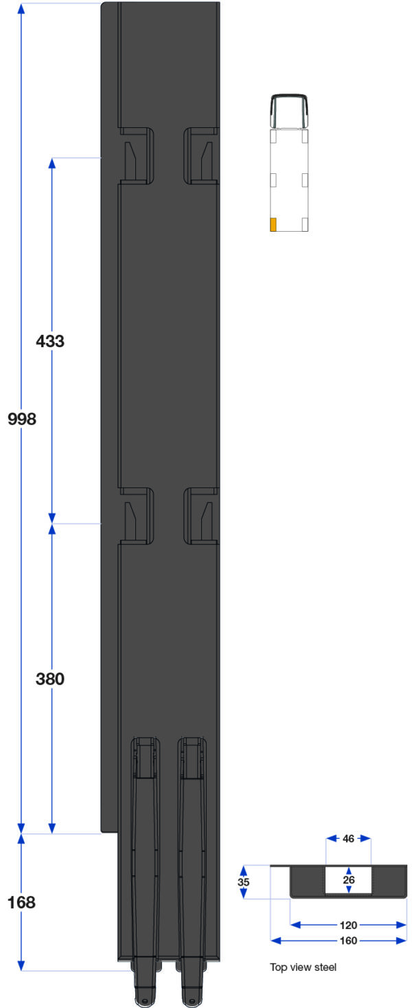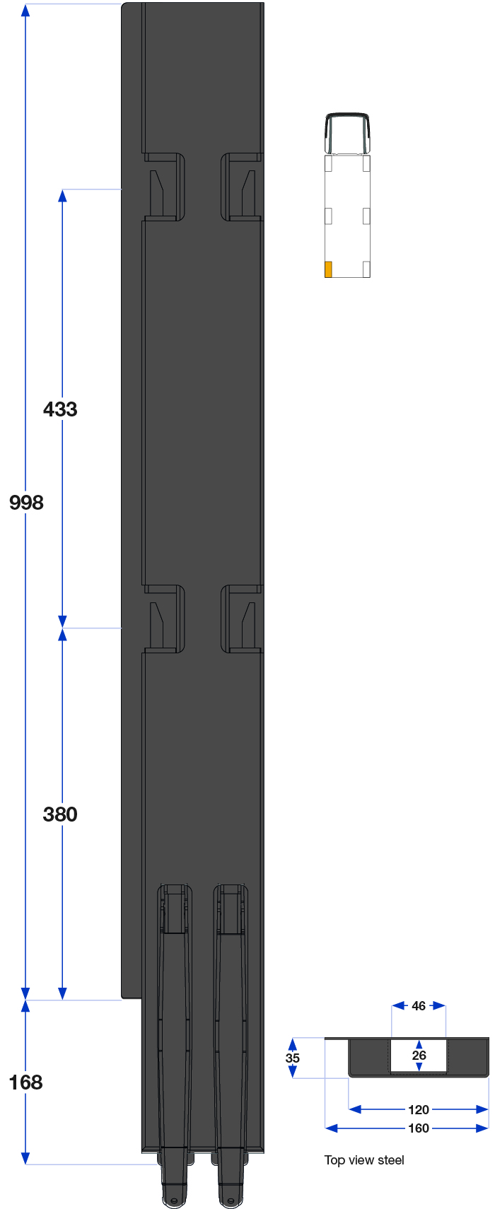 Bakstolpe 1000mm venstre BBD 2-port
